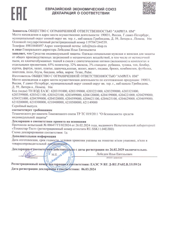 Это позволяет нам легально продавать и использовать средства индивидуальной защиты на территории России и за её пределами. Наши сертификаты подтверждают эффективность защиты здоровья и жизни пользователей, что повышает доверие к нашей продукции и упрощает выход на рынок.